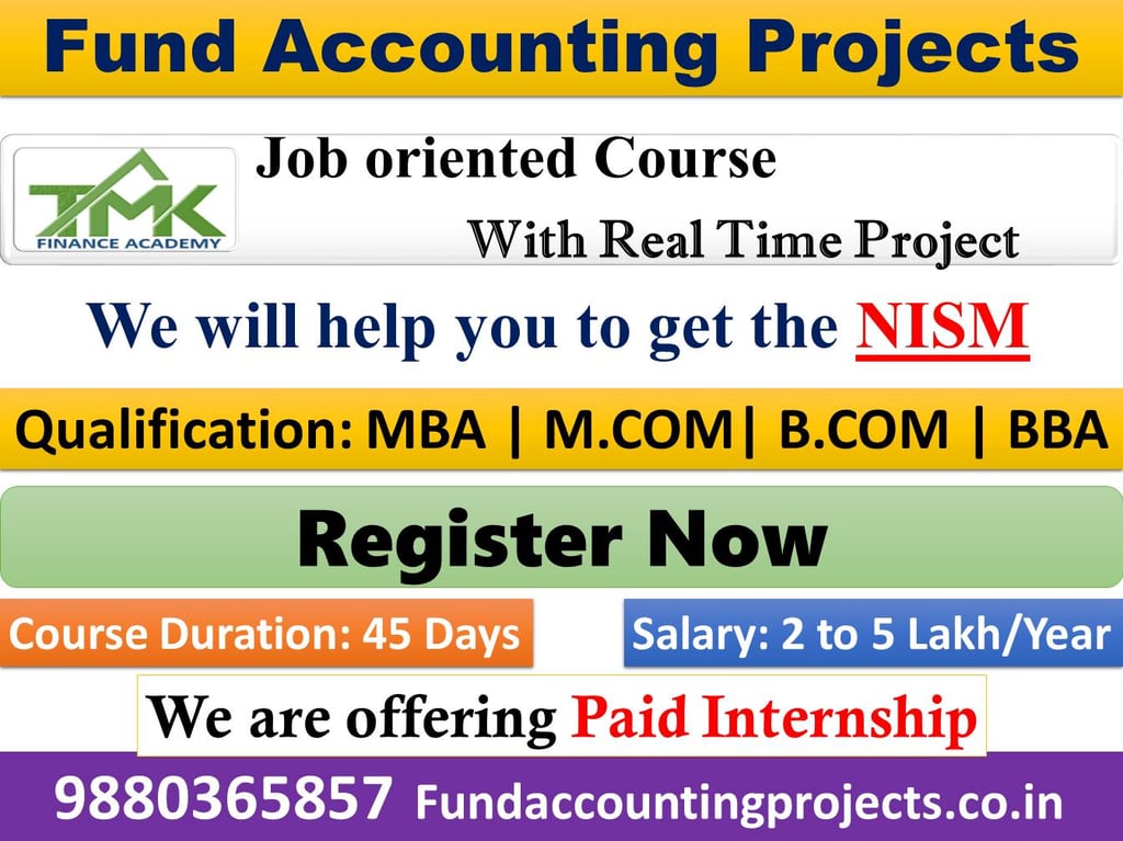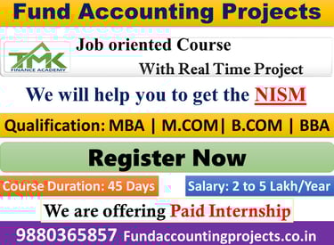 We are offering NAV Calculation project/internship for CA, MBA, M.com, B.com Graduates. Contact me for more information - 9880365857